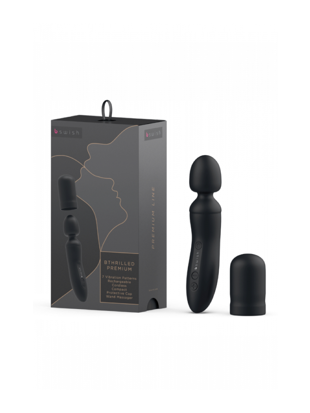 Cast a Spell… A profoundly satisfying cordless wand made for deep, intuitive exploration, the Bthrilled Premiums ergonomically contoured handle is angled to make getting to any sweet spot effortless. Expertly engineered, it features a smooth, broad head that delivers waves of all-over stimulation and a neck that flexes gently to ease unwanted friction. And with USB-recharging capability, compact sizing and unique protective cap, its the most travel-friendly wand around.