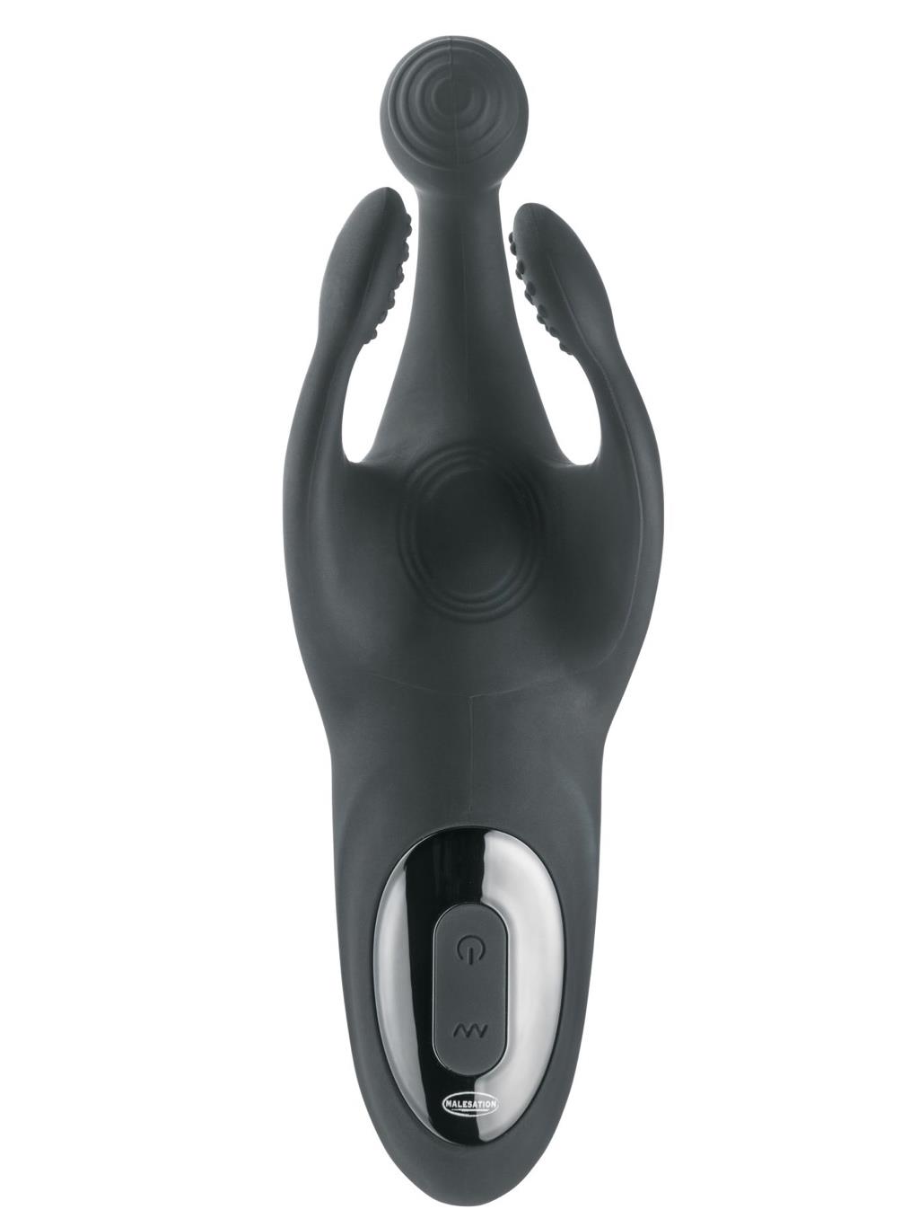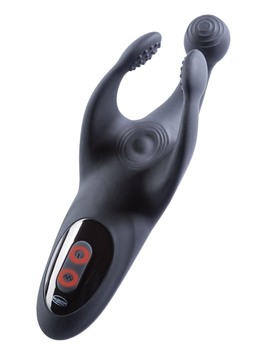 Stimulator imaginatively and cleverly designed for stimulation of the mans most sensitive spots. 2 powerful motors with 10 vibration and tapping functions provide exciting stimulation of the penis, testicles and the perineum. The different functions can be controlled easily and comfortably using the on/off button and mode button.
