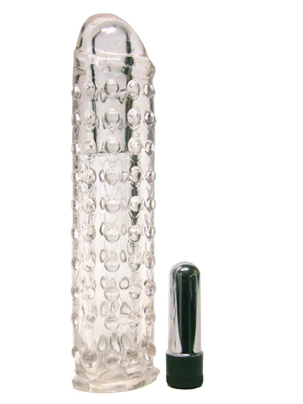Nubby penis sleeve made from extra thick silicone. very stretchy. with mini bullet and batteries