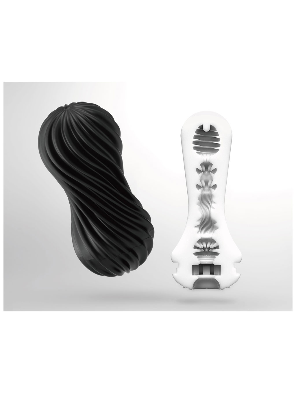 The FLEXs spiral-ribbed casing has created spinning stimulation. Cover the air hole at the top of the item during use, and the FLEX will wind and unwind, creating a spiraling movement.
